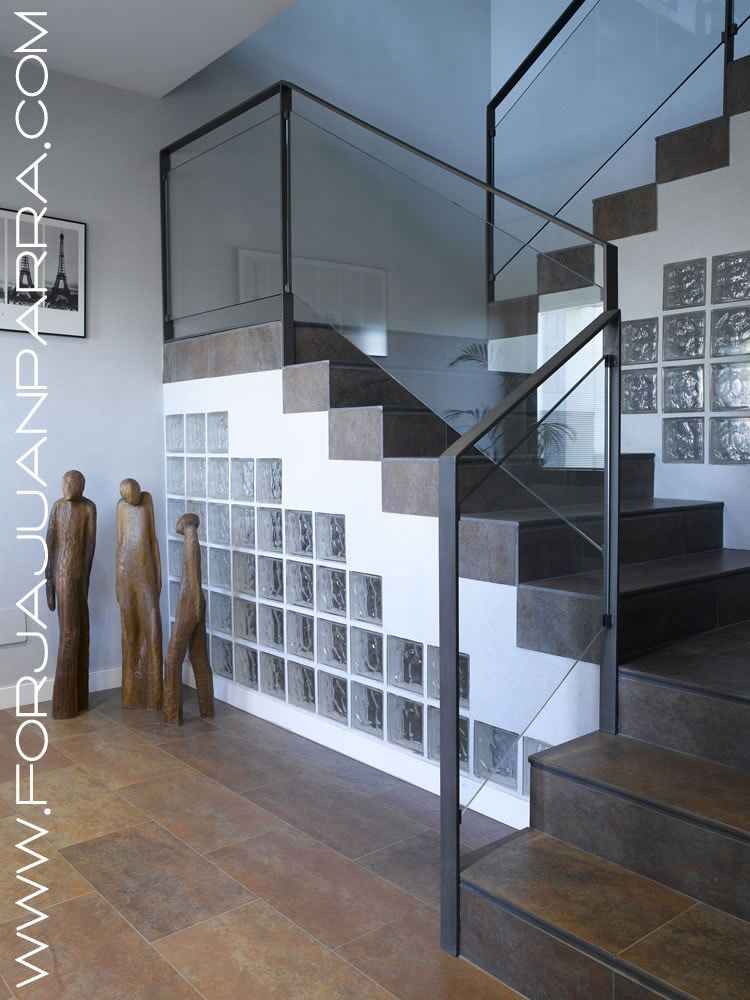 Barandilla realizada en hierro y cristal de seguridad. Lacado en gris, (posibilidad de distintos acabados) Fabricación a medida.