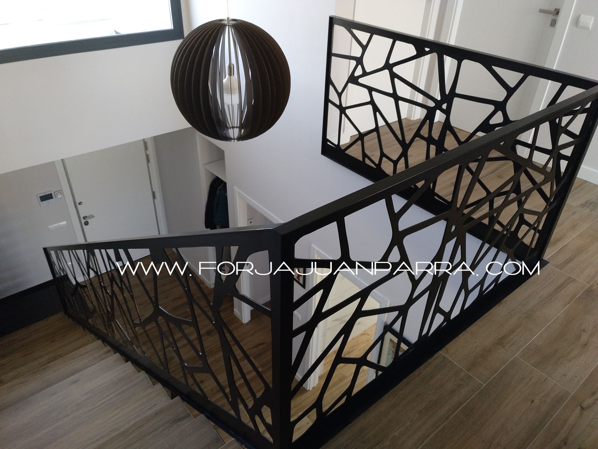 Barandilla en metal corte plano, lacado al horno distintos acabados, interior y exterior. Fabricación a medida